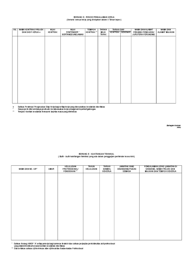 Borang D Pdf Borang D Rekod Pengalaman Kerja Senarai Semua Kerja Yang Disiapkan 5 Tahun Lepas Bil Nama Kontrak Projek Dan Skop Course Hero